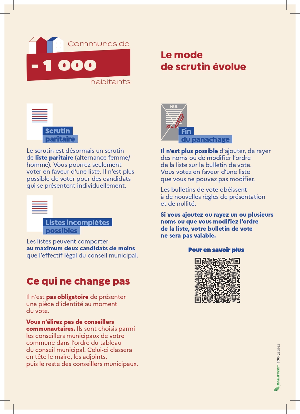 MUNICIPALES 2026: TOUT SAVOIR SUR LE NOUVEAU MODE DE SCRUTIN POUR LES COMMUNES DE – 1 000 HABITANTS 11 février 2026 Lire l'article ➔